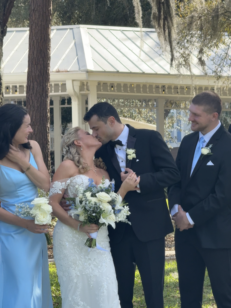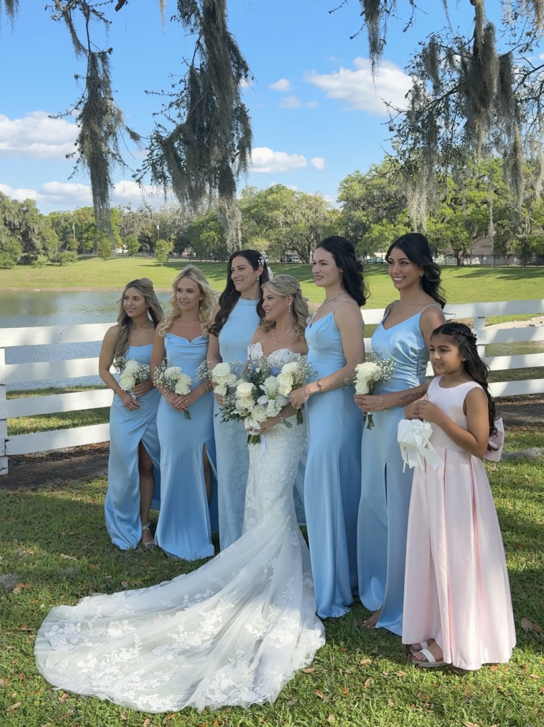 Set at Highland Manor in Apopka, this wedding moved from an outdoor ceremony under the oak trees into an indoor reception, with soft blue and white details carried through the entire day.