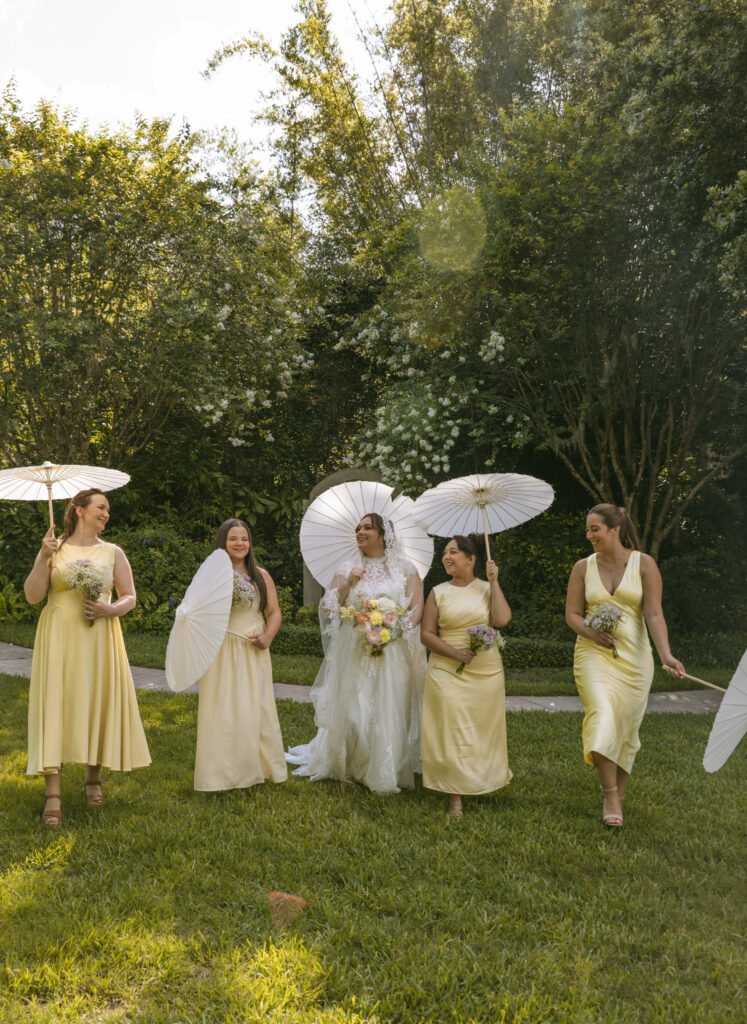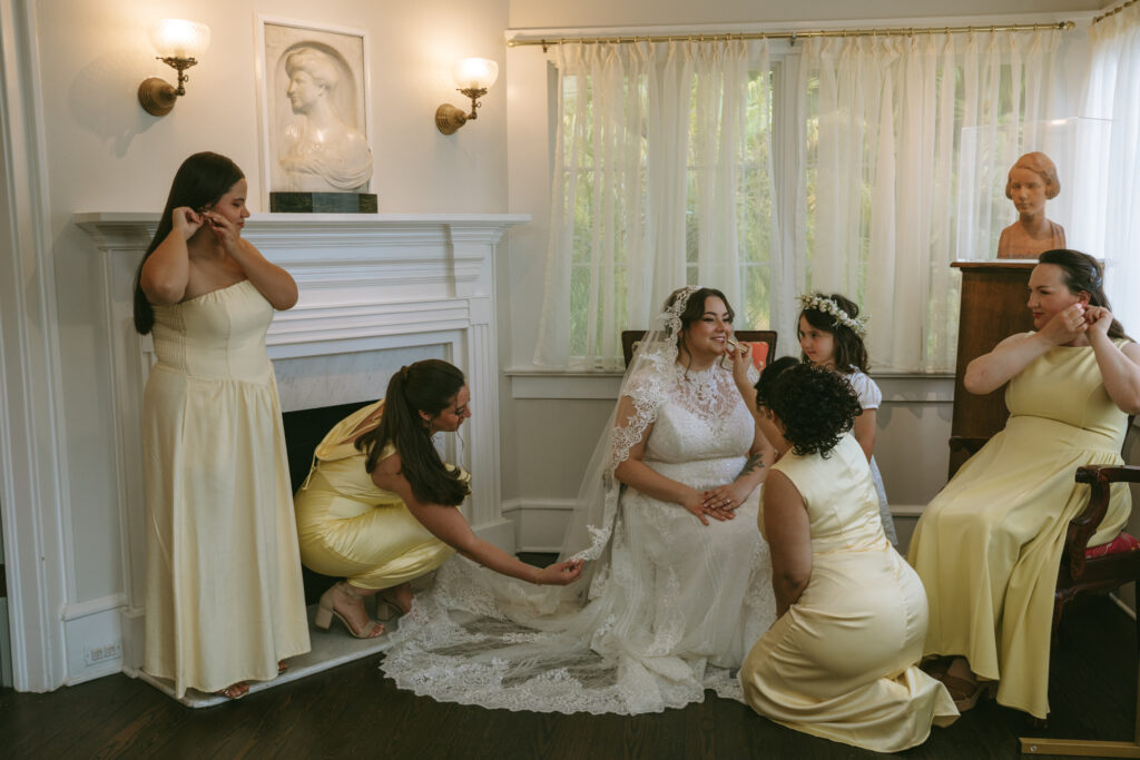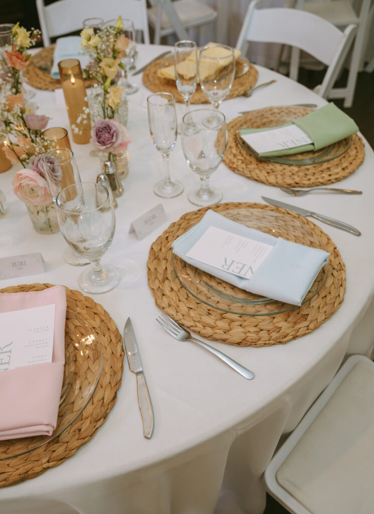 A pastel-forward palette guided the visual direction, with layered tones of blush, soft peach, lavender, pale blue, and cream woven throughout the day. Bridesmaids were dressed in butter yellow, adding warmth and cohesion, while guests were invited to participate in the palette through pastel attire—creating a unified, immersive atmosphere that felt intentional yet relaxed.