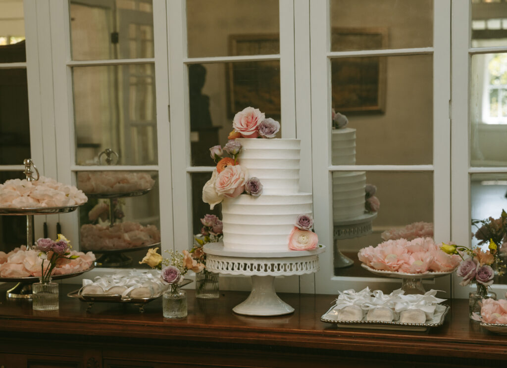 The overall design balanced structure with intimacy. Tablescapes were simple and welcoming, ceremony seating was arranged to feel close and communal, and personal details were layered throughout to encourage guests to linger, connect, and feel at home. The result was a garden estate wedding defined by softness, intentional design choices, and a shared sense of calm celebration.